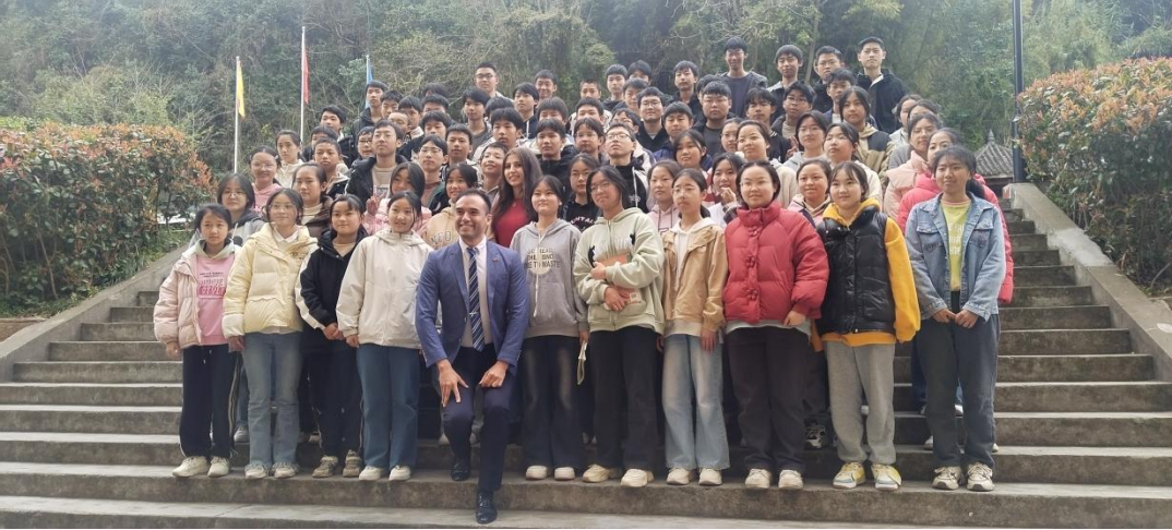 ,鼓励同学们与外国友人多开展友好交流活动,展现中国青年蓬勃向上,开放进取的精神面貌。建议他们以自身的实例向外国友人讲述家乡以及自己不断进步的故事,多与友好的外国人成为朋友。马铁石书记还向同学们介绍了外事常识,中外语言学习以及跨文化交流的知识,拓宽了学生们的国际交流知识。随后留学生们分别用英语和汉语向同学们介绍了自己国家的历史、文化、美食和名胜古迹等知识,让现场的同学们感到非常兴奋和快乐。