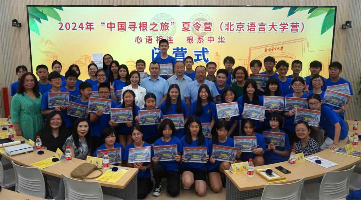 来自意大利、法国、荷兰、泰国等10个国家的38名华裔青少年结束了在北京的寻根之旅,在闭营仪式上,营员们用男生朗诵《将进酒》、书法展示《‘永’字八法》、《皮影中的中国传统节日》、大合唱《但愿人长久》等节目,表达了对中华文化的热爱以及不舍之情。