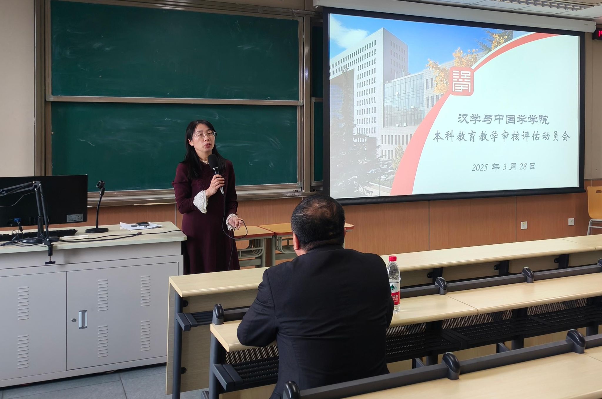 为进一步落实学校迎评工作会议精神,凝聚共识,高质量完成迎评工作,3月28日,汉学与中国学学院本科教育教学审核评估动员会在教一楼701召开,会议由学院办公室主任李宏老师主持,汉学与中国学学院党委书记马铁石、副院长(主持工作)李萍、副院长牟世荣、副书记陈蕾出席会议,学院全体教职工参加了本次会议。