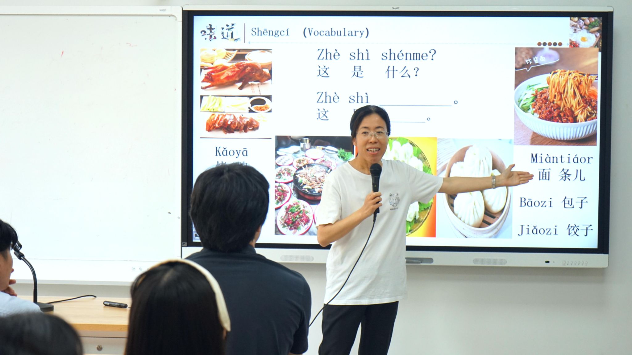 为激发日本青年学习中文、了解中国的兴趣,汉学与中国学学院还为访华团成员精心安排了一堂生动有趣的汉语体验课,汉学与中国学学院的韩阳老师和杨素静老师从中国美食出发,让日本青年在轻松欢快的氛围下快速掌握发音技巧。