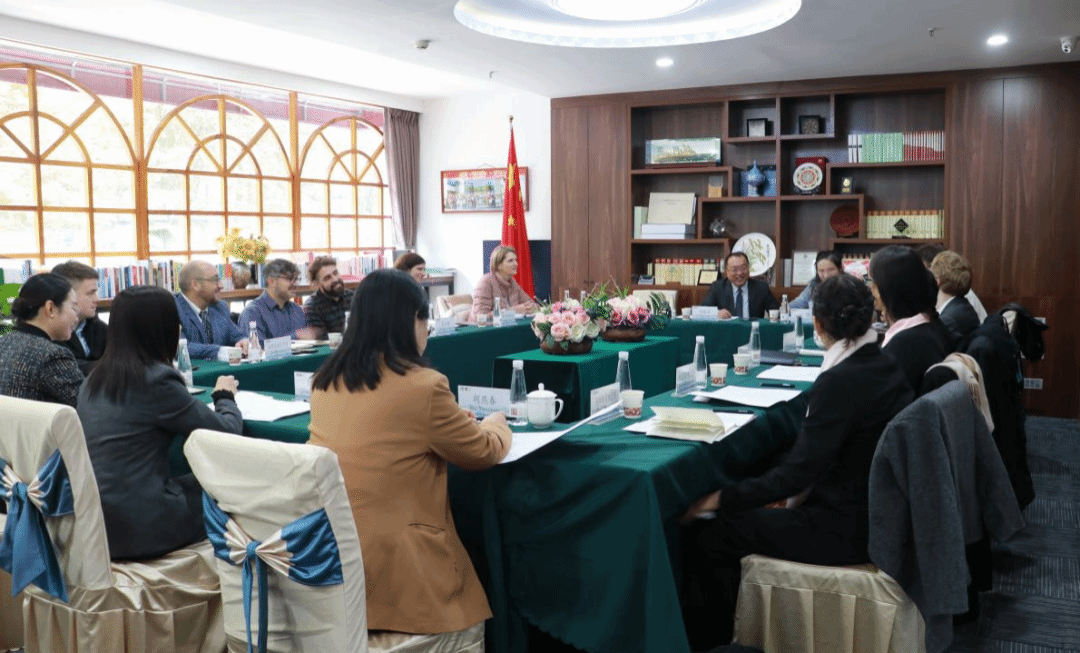 马铁石书记首先对欧美汉学家一行表示了热烈欢迎,他指出中国以“和”为贵,“认知中国四步曲”:知晓基础事实→理解文化哲学→接纳文化差异→实现文明互鉴,各位汉学家是连接中国与世界的桥梁与纽带,也希望各国汉学家们能深度了解真实、立体、全面的中国,推动中外民心相通。马铁石书记在会谈中还就“培养高端汉学人才的国际合作路径”的主题进行了阐释。他表示,以校际交流的途径开展长短期专项学生/教师交流(交换),或探索开展更具规模的双联学位项目、学历课程合作及合作办学等,都可以发挥双边优质教育资源的互补,为高端汉学人才的培养提供有效的路径。此外,双方也可联合争取资金,进行科研立项,联合署名,提升各自的学术声誉和影响力。